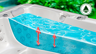 Skeletová úprava znižuje kapacitu vody vo vírivke a umožňuje tak úspornejšiu a efektívnejšiu prevádzku.
